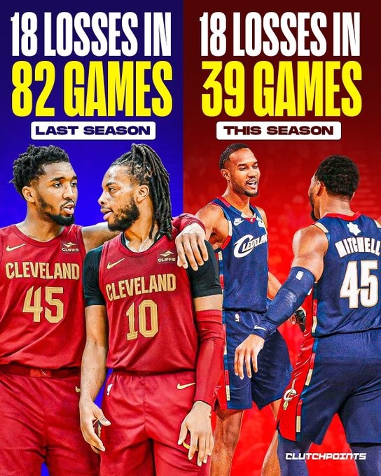 赛季前39场,骑士输掉了18场。整个上赛季,球队一共只输了18场。