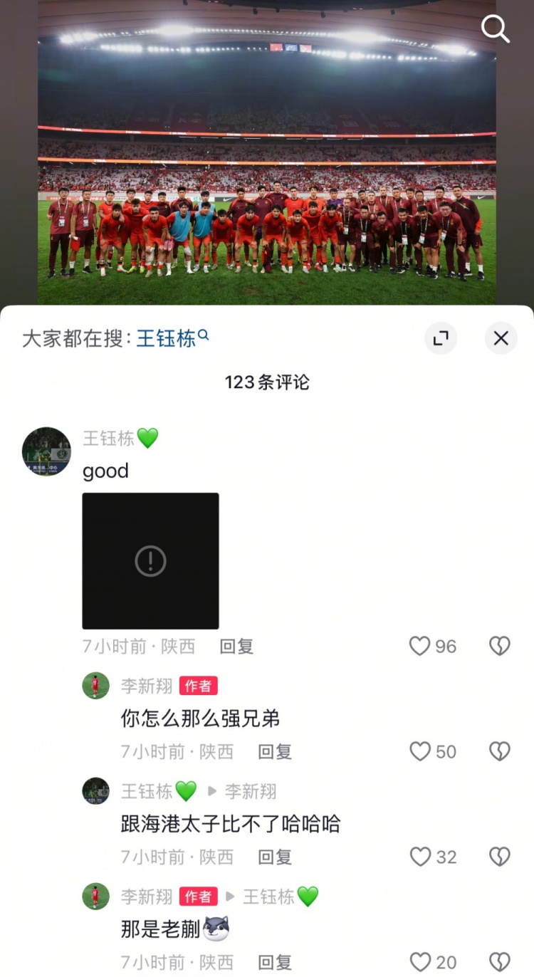 赛后李新翔更新社媒,晒出球队赛后合影、比赛照等,并配文写道:“第一次穿着印有五星红旗的球服站在球场上,很激动很紧张,发现很多不足,继续努力。”